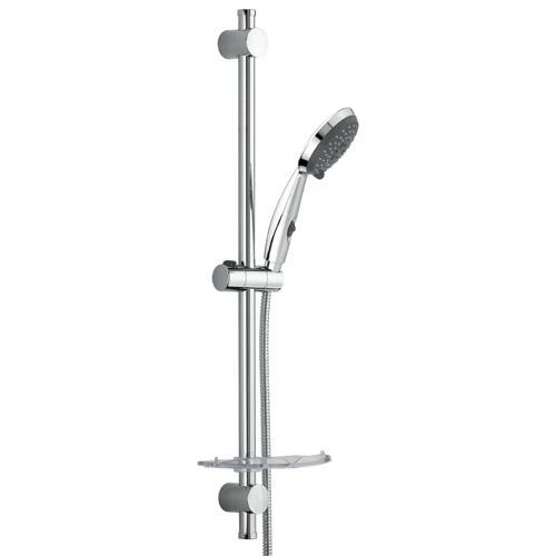 Ensemble Barre anticalcaire Bi-jets Douchette D100mm- Chromé- Flexible de douche 1,50m-Barre de douche métal chromée Ø25, hauteur 65 cm-Débit 8L/minute – 3364550000000