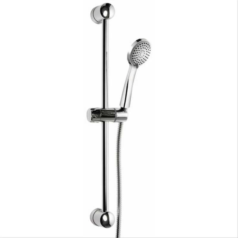 Ensemble de douche composé de : – Douchette anticalcaire 3 jets Indra Ø 95. – Barre de 560 mm Ø 25 mm. – Support coulissant. – Flexible 1,50 m inox double agrafage.
