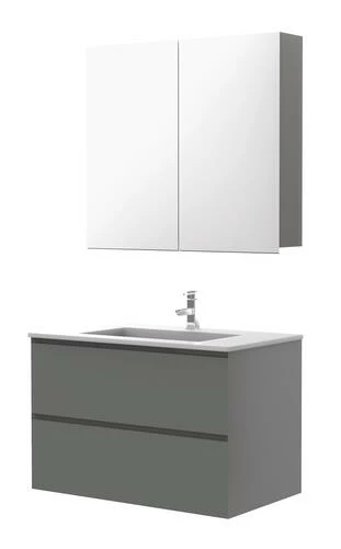 Meuble à suspendre collection MAX intemporel avec une grande capacité de rangement.Plan céramique – Tiroirs à fermeture progressive et ouverture totale – Livré monté – Fabriqué en Europe – Norme PEFC – Largeur 80cm – Anthracite mat La gamme MAX propose une offre complète de meubles à suspendre.Design sobre, lignes pures, finition mat ou brillant, cet ensemble intemporel offre une grande capacité de rangement.Meuble à suspendre dimension 80cm.Finition laquée mat.2 Tiroirs à ouverture totale et fermeture progressive.Ouverture avec prise de main, découpe biseautée en haut de tiroir.Plan vasque céramique extra-plat 18mm préformée avec trop plein.Vasque simple pour la dimension 80cm.Livré monté.Fabrication Européenne.Norme PEFC .