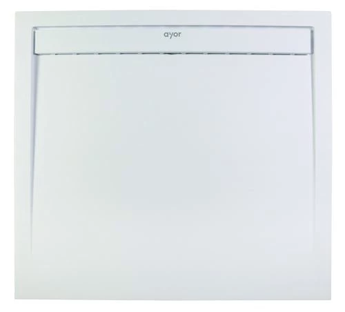 Receveur 90 x 90 cm extra-plat 3 cm en résine de synthèse Blanche, sans ressaut à encastrer et recoupable pour une installation sur-mesure grâce à sa fabrication en composé mixte résine et marbre minéral.